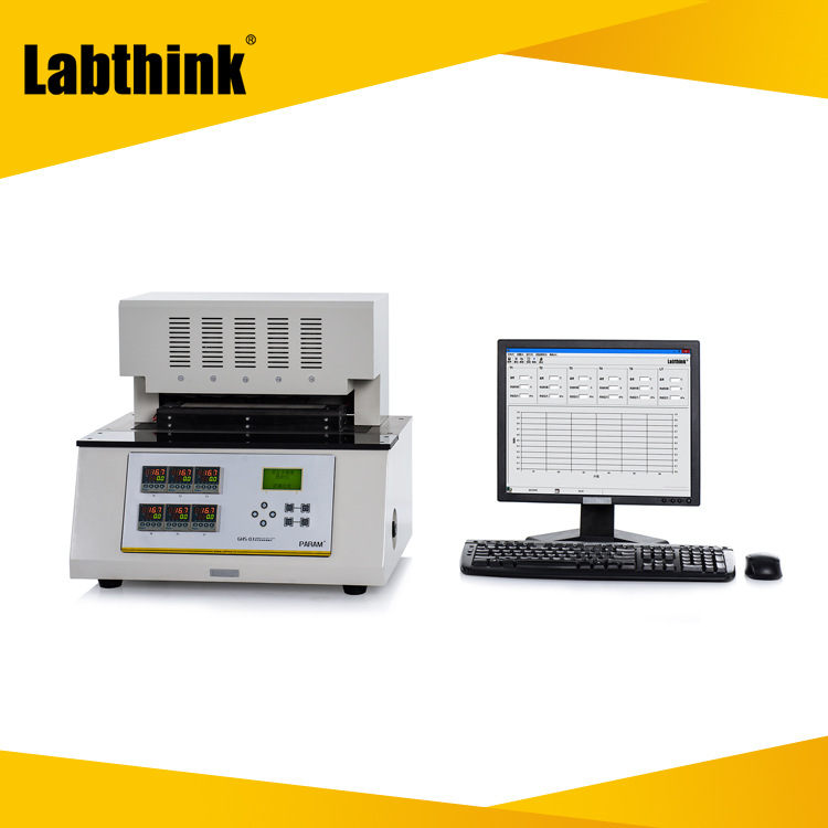 GHS-03双五点梯度热封仪可一次测定塑料薄膜基材、软包装复合膜、涂布纸及其它热封复合膜在一定热封速度、热封压力和五种热封温度下的热封参数。热封材料的熔点、热稳定性、流动性及厚度不同,会表现出不同的热封性能,其封口工艺参数可能差别很大。使用该设备可准确、高效地获得合适的热封性能参数。